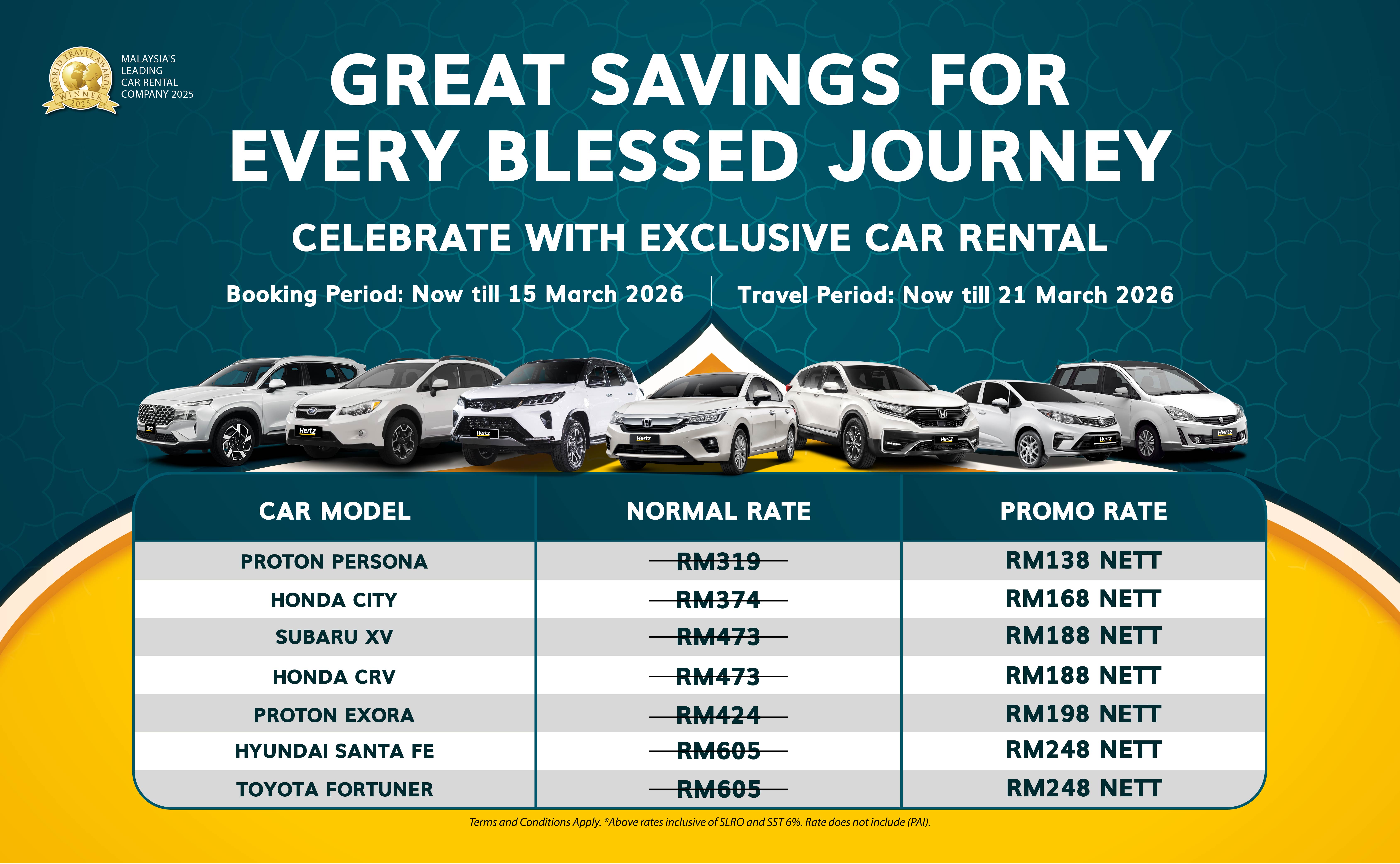 Support Hertz Malaysia by voting in the World Travel Awards 2025 and receive a RM30 e-voucher as a thank you. Voting ends 31 August – join now!